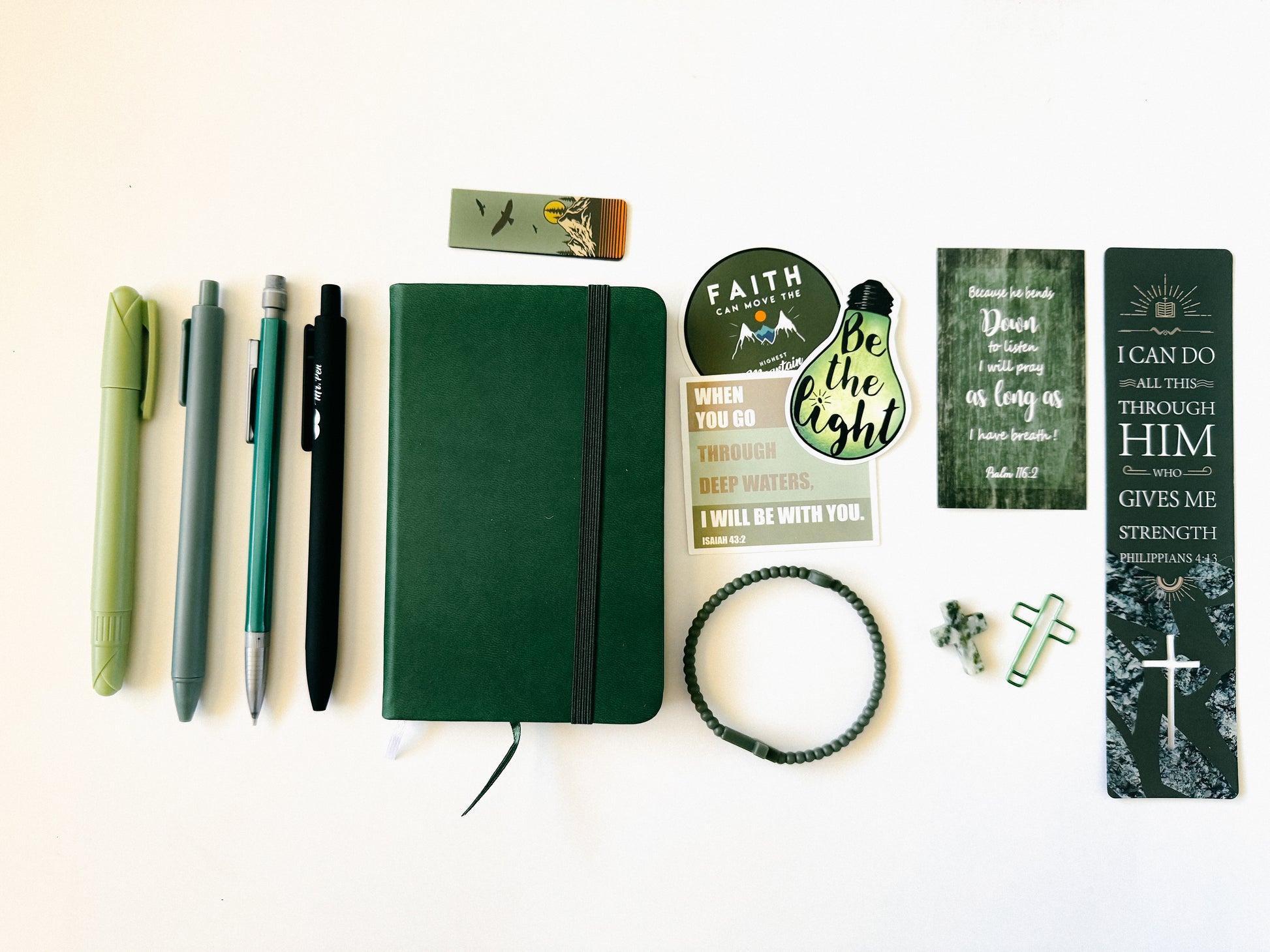This straightforward kit includes everything a guy needs to start his journaling or Bible study journey—whether he’s new to the Word or looking to deepen his connection. Clean, functional, and faith-centered, it’s all about keeping it simple and meaningful.